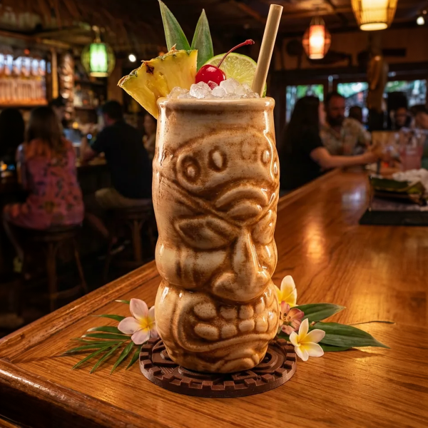 Sumá diseño, personalidad y espíritu tropical a tu mesa. Este pack de 4 posavasos con estética Tiki está pensado para amantes de la coctelería, la decoración y los objetos diferentes.